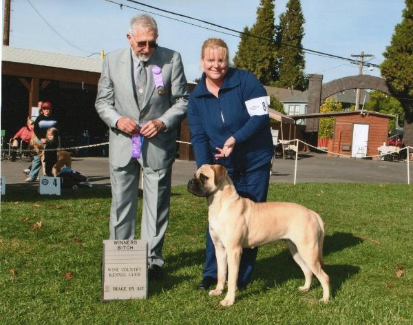 | Bristol is a daughter out of Zak. She started showing at 7 months old and has been very successful with now earning 10 points towards her Champion Title. She takes after her sire with wonderful type, balance, structure, and movement. I am exclusively handling her and loving every minute of it. We are a wonderful team. After Bristol finishes her Championship she will go out as a speical. So proud of this girl!!!! |