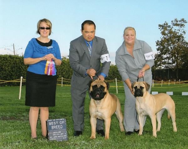 | Bristol is a daughter out of Zak. She started showing at 7 months old and has been very successful with now earning 10 points towards her Champion Title. She takes after her sire with wonderful type, balance, structure, and movement. I am exclusively handling her and loving every minute of it. We are a wonderful team. After Bristol finishes her Championship she will go out as a speical. So proud of this girl!!!! |